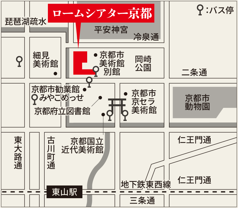 - 市バス31・201・202・203・206系統「東山二条・岡崎公園口」下車徒歩約5分
